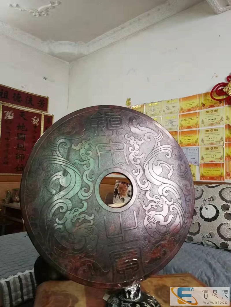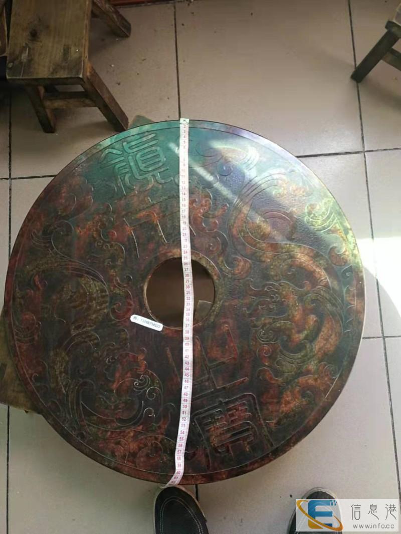 家置镇宅之宝,镇宅之镜,八卦玉璧,助君宅厦人财永远发达昌盛!交易方式:请直接电话联系!一、三玉璧应是无价之宝,上门来细看实物议价,二,看图片选择,本人身份证发给你付款后快递。承诺假货包退!关于玉璧这种器物较有名的记载,就是春秋战国时期“完璧归赵”的故事:赵王得了一件无价之宝,叫和氏璧。秦王知道了,就写一封信给赵王,说愿意拿十五座城换这块璧一、商周双面双龙雕特大硃砂玉璧外直径60公分,内圆孔直径12公分,厚1.5公分,重20斤,全盘密布硃砂,二、 商周镇宅之镜玉璧 双面左青龙右白虎前朱雀后玄武四 兽砂雕图案外直径30公分,內直径6公分,重3.2斤,蓝色玉。三、商周八卦镇宅之镜玉璧双面左青龙右白虎前朱雀后玄武四 兽砂雕图案外直径30公分,内直径4.5公分,重4.1斤。附述:玉,自古即今人们视为吉祥宝物,千百年古玉在宇宙中吸收了无限的天地灵气,它存在着强大的磁场,对住宅及人体具有安康的奇效。【镇宅之宝】,摆置在宅舍中,能镇定家财人丁之辉煌谓之‘镇宅;【镇宅之镜】,镜似如八卦镜,具有祛邪避邪之功,宇宙邪煞不会浸入,从而镇之宅安。周廷燚
